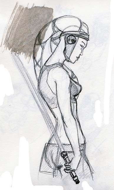 | Boceto del Angel negro, lápiz sobre papel de color. |